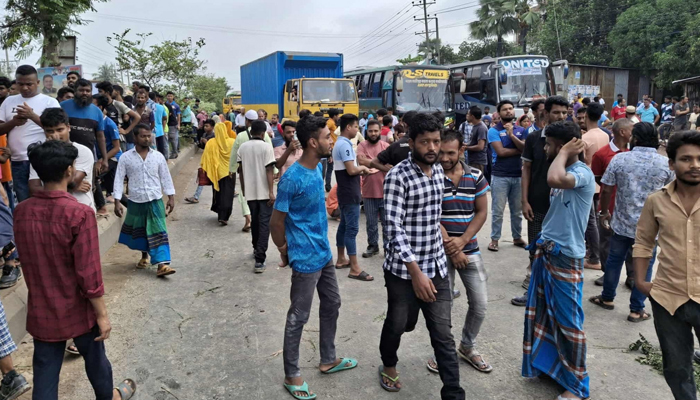 গাজীপুরে ১০ দফা দাবিতে শ্রমিকদের মহাসড়ক অবরোধ
