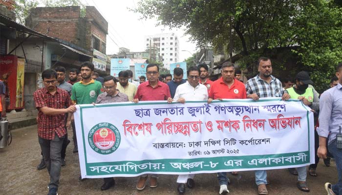 ঐতিহাসিক জুলাই মাসের ছাত্র-জনতার গণ-অভ্যুত্থান স্মরণে বিশেষ পরিচ্ছন্নতা ও মশক নিধন অভিযান পরিচালনা করেছে ঢাকা দক্ষিণ সিটি করপোরেশন (ডিএসসিসি)। শনিবার