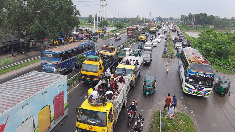 ঈদে ঘরমুখো মানুষের দুর্ভোগ, যমুনা সেতুর পূর্ব প্রান্তে ২৫ কিলোমিটার যানজট